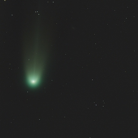 Ein Gegenschweif des Kometen ist schwach zu sehen.